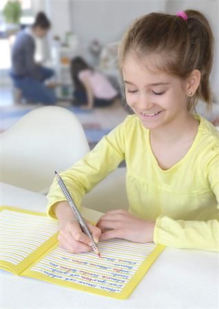 Píše na papier: