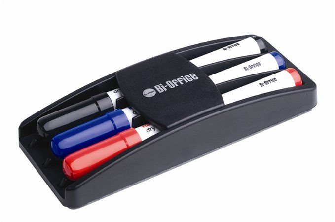 Podskupina: stierka na tabuľul na utieranie bielych tabúľ l držiak popisovačov a stierka v jednom l súčasťou sú 3 popisovače (hrúbka písma: cca. 3 mm) l nie sú magnetické l rozmery: 17 x 7 x 3 cm
