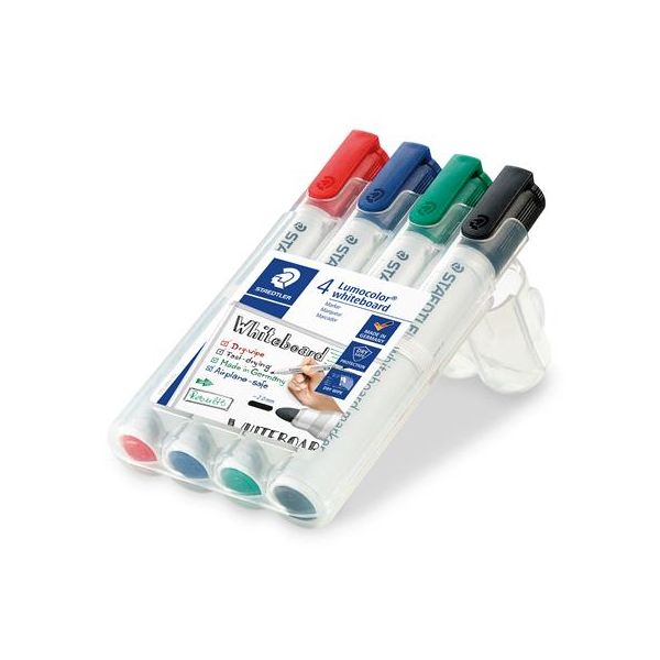 Popisovač na tabule, sada, 2 mm, kužeľový hrot, STAEDTLER "Lumocolor 351", 4 rôzne farby