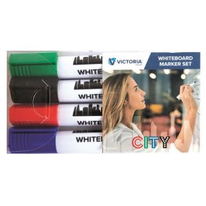 Popisovač na tabule, sada, 1-3 mm, kužeľový hrot, VICTORIA VISUAL "City", 4 rôzne farby