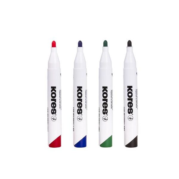 Popisovač na biele a flipchartové tabule, sada, 3 mm, kužeľový KORES "K-Marker XW1", 4 rôzne farby