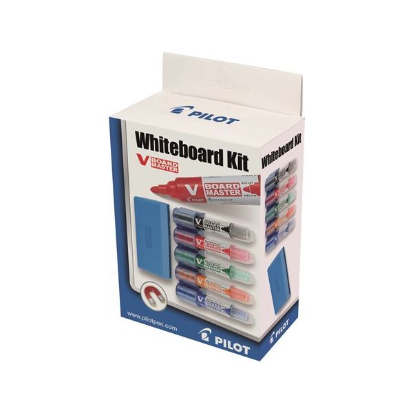 Sada popisovačov, 2,3 mm, s držiakom a stierkou, PILOT "V-Board Master", 5 rôznych farieb