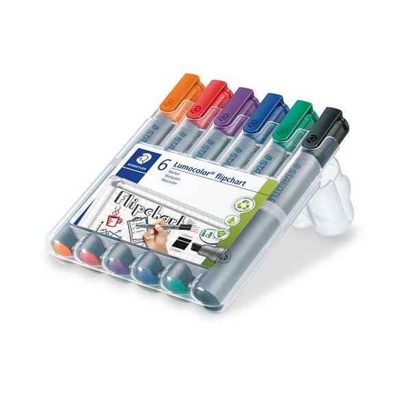 Popisovač na flipchartové tabule, 2 mm, kužeľový hrot, STAEDTLER "Lumocolor 356", 6 rôznych farieb