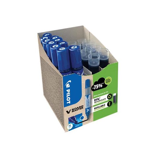 Popisovač na tabule, 2,3 mm, kužeľový hrot, PILOT "V-Board Master, Bonus Pack", modrá + náplň