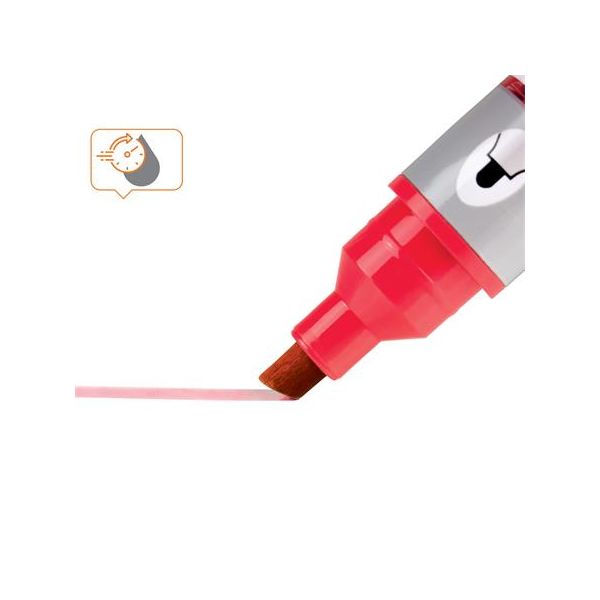 Marker 502 v červenej farbe je ideálny pre použitie na biele tabule a iné neporézne povrchy. - jasné, tučné čiary, ktoré sa ľahko čítajú- klinový hrot- suché mazanie