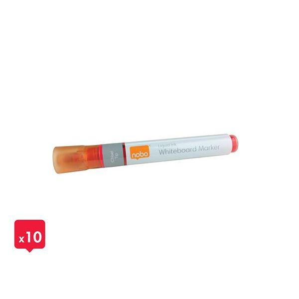 Popisovače na tabule, určené na každodenné použitie, ponúkajú všestranné možnosti pre neporézne povrchy - napr. biele, sklenené alebo smaltované tabule. Použite na tabuľách Nobo pre optimálny výkon! - rýchloschnúci atrament - možno nasucho stierať - množstvo atramentu je možné sledovať cez okienko na tele pera - ideálne do školy, kancelárie alebo domácnosti - žiarivá farba - zrezaný hrot - hrúbka: 4 mm - balenie: 10 ks