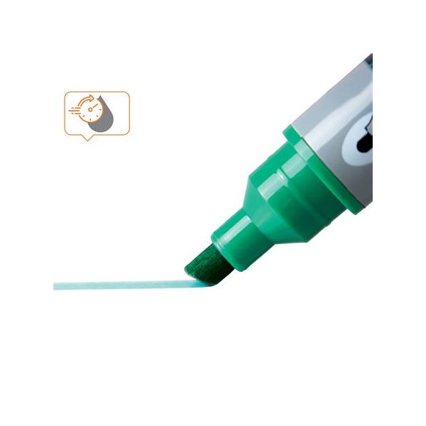 Popisovače na tabule, určené na každodenné použitie, ponúkajú všestranné možnosti pre neporézne povrchy - napr. biele, sklenené alebo smaltované tabule. Použite na tabuľách Nobo pre optimálny výkon! - rýchloschnúci atrament - možno nasucho stierať - množstvo atramentu je možné sledovať cez okienko na tele pera - ideálne do školy, kancelárie alebo domácnosti - žiarivá farba - zrezaný hrot - hrúbka: 4 mm - balenie: 10 ks