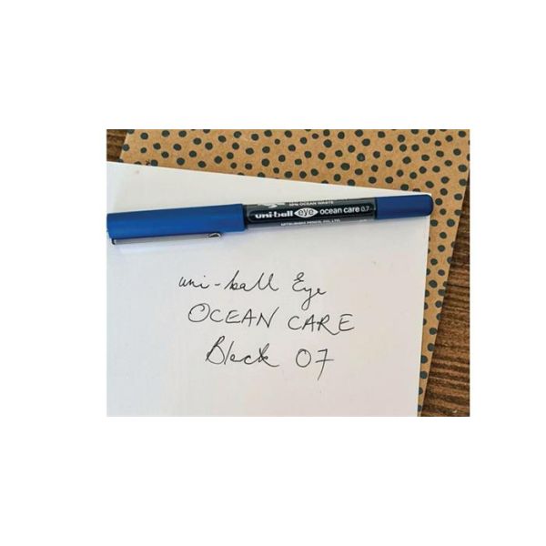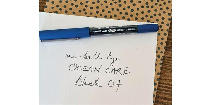 Objavte nové rollery UNI Eye Ocean Care! Ekologické pero je vyrobené z recyklovaného plastu, zčasti pochádzajúceho priamo z oceánu.