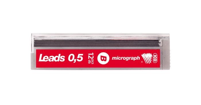 Grafitová tuha, 0,5 mm, B, ICO "Micrograph"