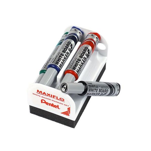 Sada obsahuje: 4 rôzne farby popisovačov (čierna, červená, zelená, modrá) a 1 špongia