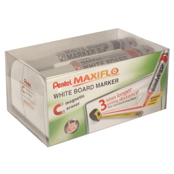 Popisovače, sada, 6 mm, kužeľovitý hrot, PENTEL "Maxiflo", 4 rôzne farby