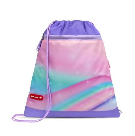 Textilné vrecko na prezuvky s farebnou potlačou na prednej strane, so zarážkami na zaťahovanie na oboch stranách. Z rovnakej kolekcie v ponuke peračník, obal, box na zošity a pamätník. Materiál: Polyester. Rozmer: 40x32 cm.