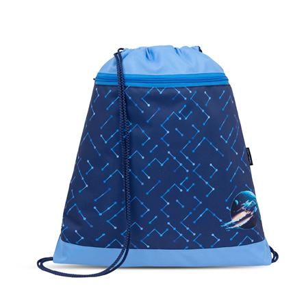 Textilné vrecko na prezuvky s farebnou potlačou na prednej strane, so zarážkami na zaťahovanie na oboch stranách. Z rovnakej kolekcie v ponuke peračník, obal, box na zošity a pamätník. Materiál: Polyester. Rozmer: 40x32 cm.
