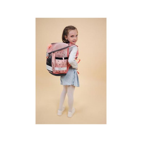 Školské tašky pre kreativitu, hravosť a jedinečnosť - 3 vnútorné priehradky (vhodné na knihy veľkosti A4) + 1 odkladací priestor na rozvrh + 2 bočné priehradky (na dáždnik + 0,7 litrová fľaša) - nastaviteľné predné vrecko na držiak pera - vrecko na mobil na zips - ergonomický tvar - priedušný polstrovaný chrbát - polstrované ramenné popruhy v tvare S, nastaviteľný hrudný a bedrový pás - jednoduché otváranie vďaka kovovej pracke, s reflexnými prvkami - nastaviteľný hrudný popruh pre optimálne rozloženie hmotnosti - certifikát AGR - materiál: vodeodolný polyester - veľkosť: 19x36x32 cm - hmotnosť: 0,93-0,99 kg -odporúčané pre 6-9 ročné deti -odporúčané od výšky 110 cm -2 roky záruka