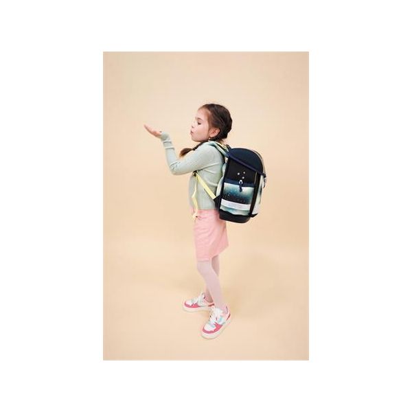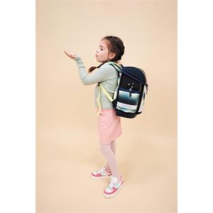 Školské tašky pre kreativitu, hravosť a jedinečnosť - 3 vnútorné priehradky (vhodné na knihy veľkosti A4) + 1 odkladací priestor na rozvrh + 2 bočné priehradky (na dáždnik + 0,7 litrová fľaša) - nastaviteľné predné vrecko na držiak pera - vrecko na mobil na zips - ergonomický tvar - priedušný polstrovaný chrbát - polstrované ramenné popruhy v tvare S, nastaviteľný hrudný a bedrový pás - jednoduché otváranie vďaka kovovej pracke, s reflexnými prvkami - nastaviteľný hrudný popruh pre optimálne rozloženie hmotnosti - certifikát AGR - materiál: vodeodolný polyester - veľkosť: 19x36x32 cm - hmotnosť: 0,93-0,99 kg -odporúčané pre 6-9 ročné deti -odporúčané od výšky 110 cm -2 roky záruka
