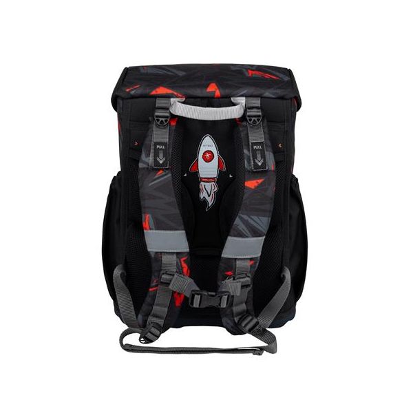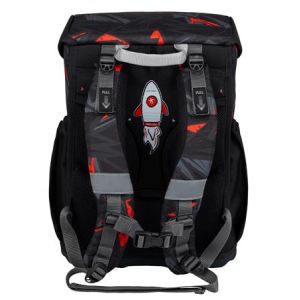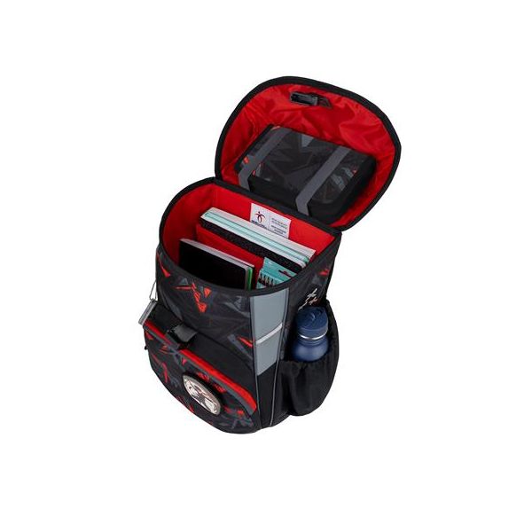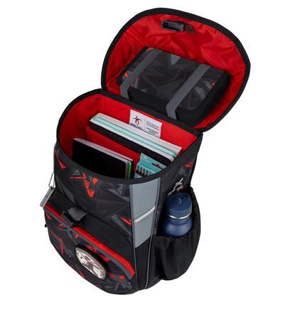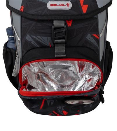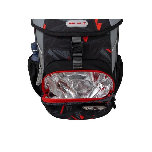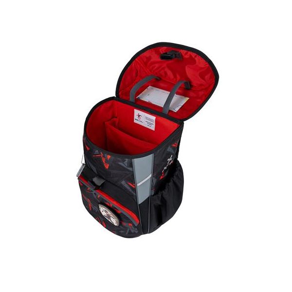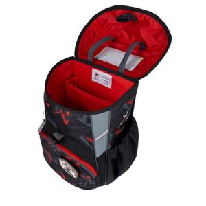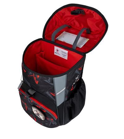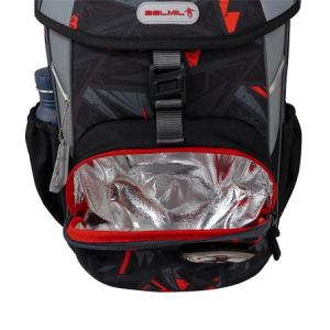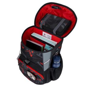 2 vnútorné priehradky (vhodné pre knihy formátu A4) + 2 bočné vrecká (na dáždnik a fľašu s objemom 0,7 litra) + 1 priehradka na desiatu
