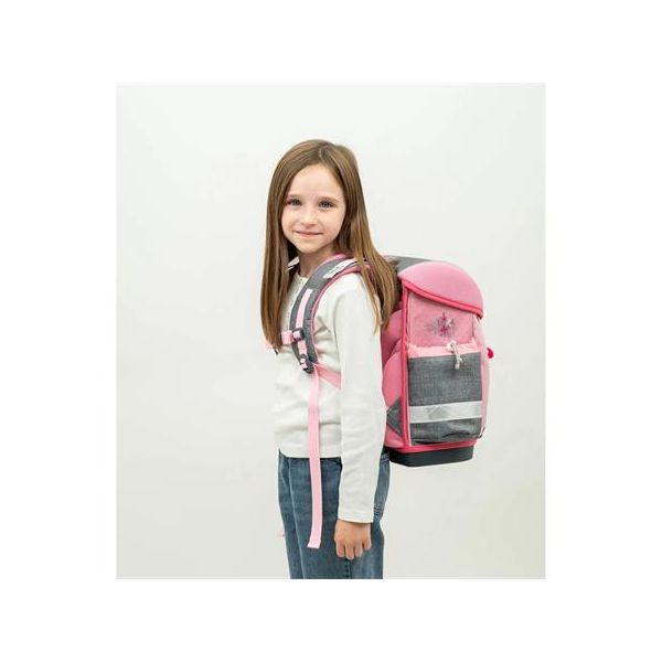 Ergonomický dizajn: -Ergonomicky tvarovaná školská taška s priedušným, polstrovaným chrbtovým systémom, ktorý zabezpečuje maximálne pohodlie a pomáha predchádzať bolestiam chrbta. Ergonomickú vhodnosť potvrdzuje aj certifikát nemeckého inštitútu AGR. Nastaviteľné popruhy: -odnímateľný a nastaviteľný hrudný popruh, nastaviteľné ramenné popruhy pre dokonalé prispôsobenie -stabilné a pohodlné nosenie -polstrované ramenné popruhy v tvare S, prispôsobiteľné postave dieťaťa, zabezpečujú optimálne usadenie a komfort pri nosení. Premyslený vnútorný priestor: -tri priestranné vnútorné priehradky vhodné aj na zošity a knihy formátu A4, vďaka čomu majú všetky školské potreby svoje miesto – dve bočné vrecká na dáždnik alebo 0,7 l fľašu na vodu. Praktické bočné vrecká:Dve bočné vrecká sú ideálne na uloženie dáždnika alebo 0,7 l fľaše na vodu a umožňujú rýchly a jednoduchý prístup. Jednoducho ovládateľná pracka: -ľahko otvárateľná kovová pracka s reflexným prvkom, ktorý zvyšuje viditeľnosť a bezpečnosť dieťaťa v cestnej premávke. Superľahká konštrukcia: -hmotnosť tašky je len 930–990 g, takže zbytočne nezaťažuje ramená ani chrbát dieťaťa. Európska výroba: Produkt je navrhnutý a vyrábaný rodinnou firmou v Európe už od roku 1965, čo zaručuje jeho vysokú kvalitu a spoľahlivosť. Ideálna voľba pre rodičov, ktorí kladú dôraz na ergonomickú, bezpečnú a ľahkú školskú tašku pre svoje dieťa.