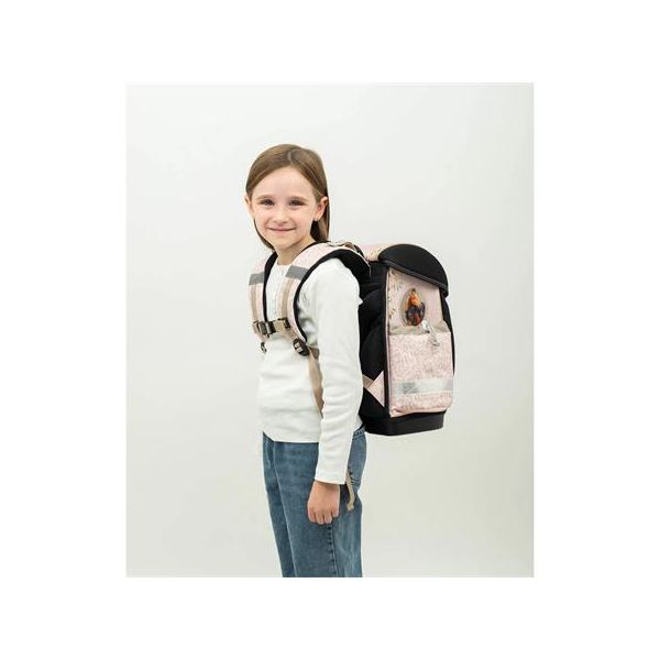 Ergonomický dizajn: -Ergonomicky tvarovaná školská taška s priedušným, polstrovaným chrbtovým systémom, ktorý zabezpečuje maximálne pohodlie a pomáha predchádzať bolestiam chrbta. Ergonomickú vhodnosť potvrdzuje aj certifikát nemeckého inštitútu AGR. Nastaviteľné popruhy: -odnímateľný a nastaviteľný hrudný popruh, nastaviteľné ramenné popruhy pre dokonalé prispôsobenie -stabilné a pohodlné nosenie -polstrované ramenné popruhy v tvare S, prispôsobiteľné postave dieťaťa, zabezpečujú optimálne usadenie a komfort pri nosení.  Premyslený vnútorný priestor: -tri priestranné vnútorné priehradky vhodné aj na zošity a knihy formátu A4, vďaka čomu majú všetky školské potreby svoje miesto – dve bočné vrecká na dáždnik alebo 0,7 l fľašu na vodu. Praktické bočné vrecká:Dve bočné vrecká sú ideálne na uloženie dáždnika alebo 0,7 l fľaše na vodu a umožňujú rýchly a jednoduchý prístup. Jednoducho ovládateľná pracka: -ľahko otvárateľná kovová pracka s reflexným prvkom, ktorý zvyšuje viditeľnosť a bezpečnosť dieťaťa v cestnej premávke.  Superľahká konštrukcia: -hmotnosť tašky je len 930–990 g, takže zbytočne nezaťažuje ramená ani chrbát dieťaťa. Európska výroba: Produkt je navrhnutý a vyrábaný rodinnou firmou v Európe už od roku 1965, čo zaručuje jeho vysokú kvalitu a spoľahlivosť. Ideálna voľba pre rodičov, ktorí kladú dôraz na ergonomickú, bezpečnú a ľahkú školskú tašku pre svoje dieťa.