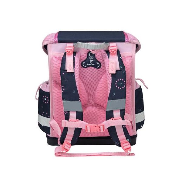 Ergonomický dizajn: -Ergonomicky tvarovaná školská taška s priedušným, polstrovaným chrbtovým systémom, ktorý zabezpečuje maximálne pohodlie a pomáha predchádzať bolestiam chrbta. Ergonomickú vhodnosť potvrdzuje aj certifikát nemeckého inštitútu AGR. Nastaviteľné popruhy: -odnímateľný a nastaviteľný hrudný popruh, nastaviteľné ramenné popruhy pre dokonalé prispôsobenie -stabilné a pohodlné nosenie -polstrované ramenné popruhy v tvare S, prispôsobiteľné postave dieťaťa, zabezpečujú optimálne usadenie a komfort pri nosení.  Premyslený vnútorný priestor: -tri priestranné vnútorné priehradky vhodné aj na zošity a knihy formátu A4, vďaka čomu majú všetky školské potreby svoje miesto – dve bočné vrecká na dáždnik alebo 0,7 l fľašu na vodu. Praktické bočné vrecká:Dve bočné vrecká sú ideálne na uloženie dáždnika alebo 0,7 l fľaše na vodu a umožňujú rýchly a jednoduchý prístup. Jednoducho ovládateľná pracka: -ľahko otvárateľná kovová pracka s reflexným prvkom, ktorý zvyšuje viditeľnosť a bezpečnosť dieťaťa v cestnej premávke.  Superľahká konštrukcia: -hmotnosť tašky je len 930–990 g, takže zbytočne nezaťažuje ramená ani chrbát dieťaťa. Európska výroba: Produkt je navrhnutý a vyrábaný rodinnou firmou v Európe už od roku 1965, čo zaručuje jeho vysokú kvalitu a spoľahlivosť. Ideálna voľba pre rodičov, ktorí kladú dôraz na ergonomickú, bezpečnú a ľahkú školskú tašku pre svoje dieťa.
