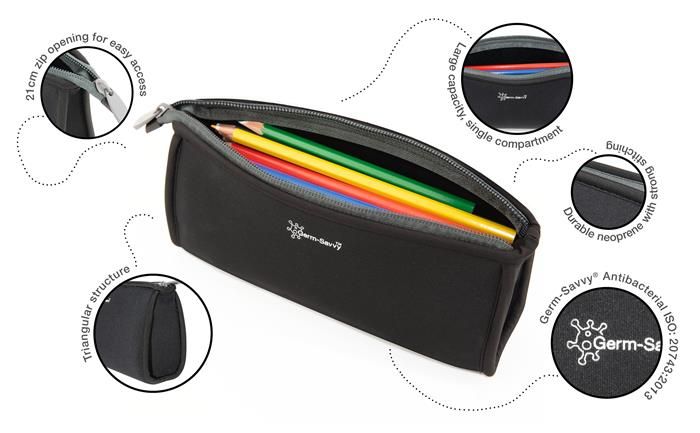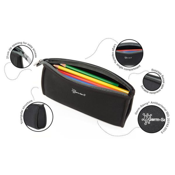 odolný preačník prémiovej kvailty od značky RAPESCO z neoprénovej látky povrch je ošetrený antibakteriálnym prostriedkom Germ-Savvy®, ktorý poskytuje ochranu proti baktériám odolný voči opotrebovaniu vodeodolný sivý zips vhodný na skladovanie až 90 ks pier a ceruziek štandardnej veľkosti, ale je možno ho využiť aj na iné účely: napr ako kozmetická taštička alebo na cestovanie 1 priečinok rozmery: 200x100x55 mm Značka: RAPESCO Výrobca: Rapesco-Tacwise BV Adresa: Kraijenhoffstraat, 137A, 1018RG Amsterdam, Netherlands Web: www.rapesco.com Email: [email protected]