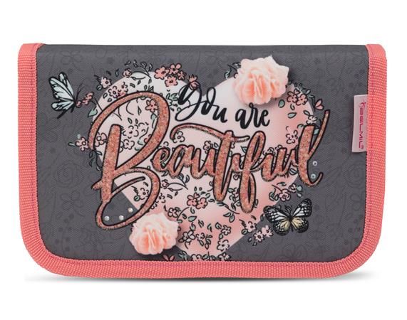 - priehradky: 1 vnútorná priehradka + 2 chlopne - kapacita: 27 ceruziek + 1 pravítko + 1 guma + 1 strúhadlo - materiál: polyester - rozmer: 14x20,5x3,5 cm - odporúčané pre 6-9 ročné deti