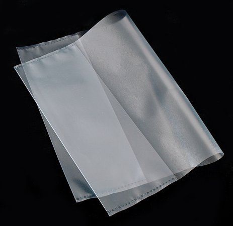 Transparentný obal zo silného PVC s hladkou štruktúrou.