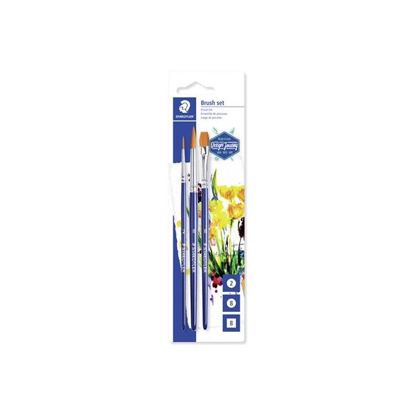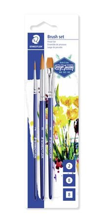 Plochý štetec s krátkymi štetinami. Drevená rukoväť lakovaná bezfarebným lakom a hliníkovým úchytom, s hrúbkou stopy 8 mm. Určený k maľovaniu a kresleniu na papier.