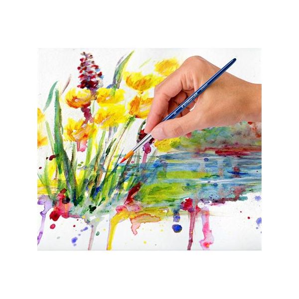 Plochý štetec s krátkymi štetinami. Drevená rukoväť lakovaná bezfarebným lakom a hliníkovým úchytom, s hrúbkou stopy 10 mm. Určený k maľovaniu a kresleniu na papier.
