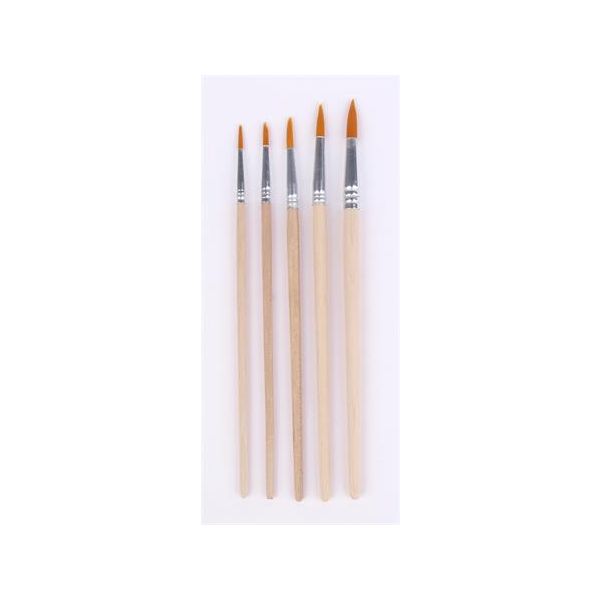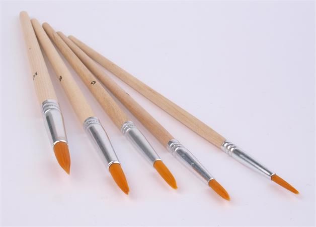 Plochý štetec s krátkymi štetinami. Drevená rukoväť lakovaná bezfarebným lakom a hliníkovým úchytom, s hrúbkou stopy 6 mm. Určený k maľovaniu a kresleniu na papier.