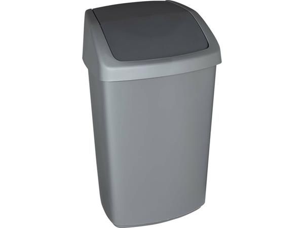 Odpadkový kôš s výklopným vekom, 50 l, CURVER "Swing top", strieborná/grafitová