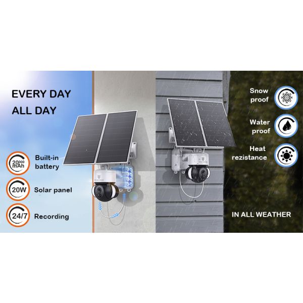 Solárnu HD kameru Viking HDs03 4G je možné napájať buď solárnym panelom, ktorý dodá vašej kamere dostatočný výkon na prevádzku alebo cez USB-C priamo z elektrickej siete. Celkový výkon solárneho panelu je 20W. Vďaka svojej integrovanej baterii (20 000mAh) vydrží bez problému robiť záznam aj v čase, keď práve nie je vydarený slnečný deň. Táto kamera vďaka svojej funkcii automatického uspania výrazne šetrí spotrebu energie. Kamera sa automaticky aktivuje v prípade, keď zaznamená pohyb.