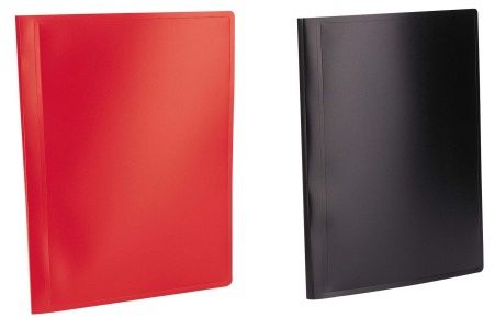 Katalógová kniha na prezentáciu materiálov formátu A4, (vkladanie zhora). - kniha obsahuje 20 transparentných PP obalov (0,04 mm) na vloženie dokumentov A4- hrúbka obalu 0,75 mm s papierovou etiketou na chrbtovej strane