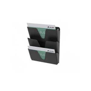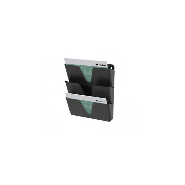 Držiak na prospekty, kovový, nástenný, horizontálny, A4, 3 priečinky, ALBA, čierny