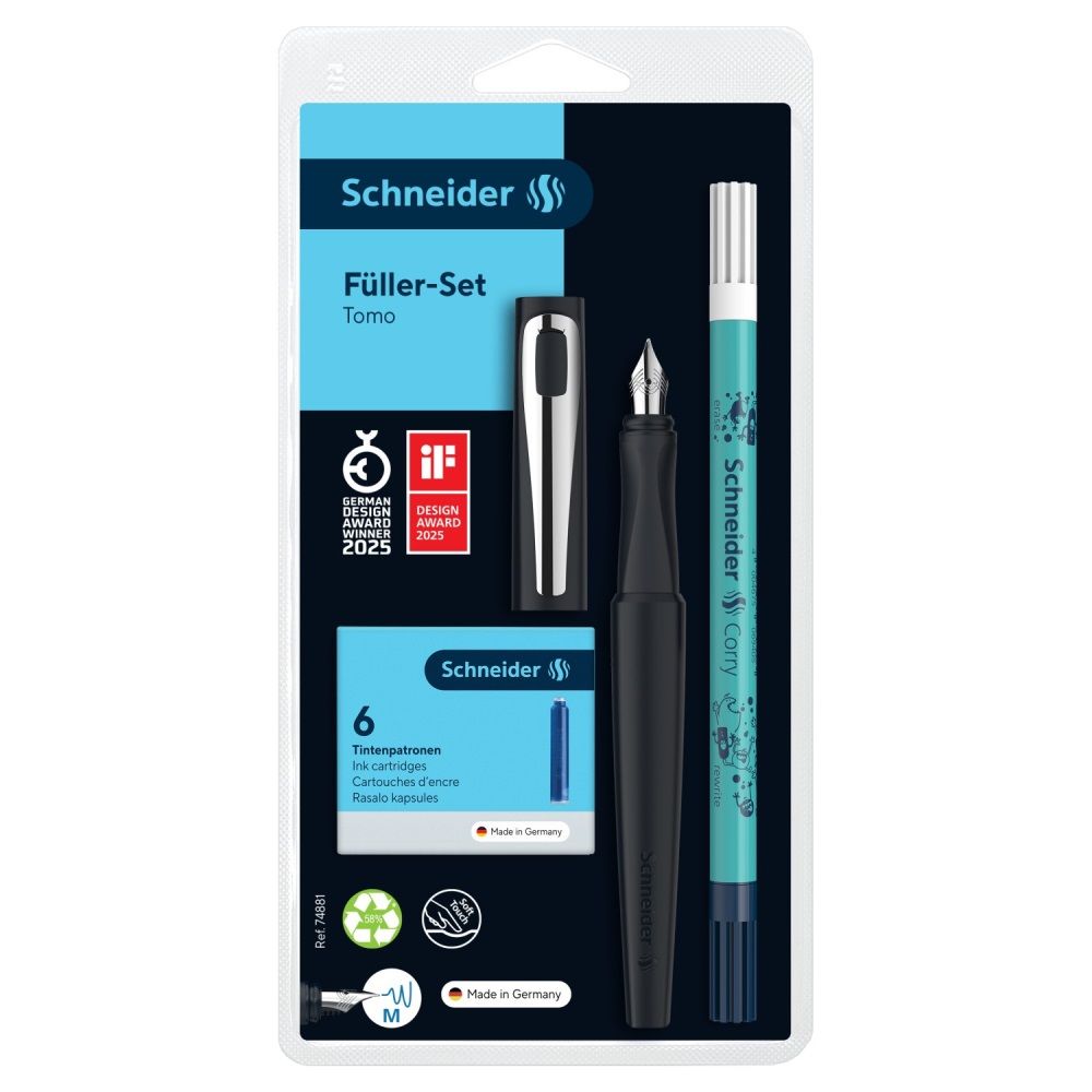 Tomo je plniace pero s minimalistickým dizajnom a matným povrchom. Ekologické a zdroje šetriace telo a uzáver sú vyrobené z 58 % recyklovaného plastu. leštený hrot SmartFlow z nehrdzavejúcej ocele …