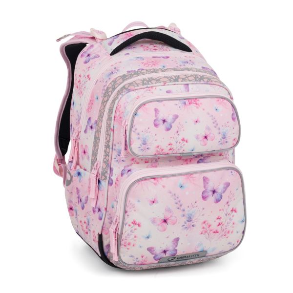 Sada školský batoh BagMaster DOPI 25 A + Peračník + Vrecko - Motýle