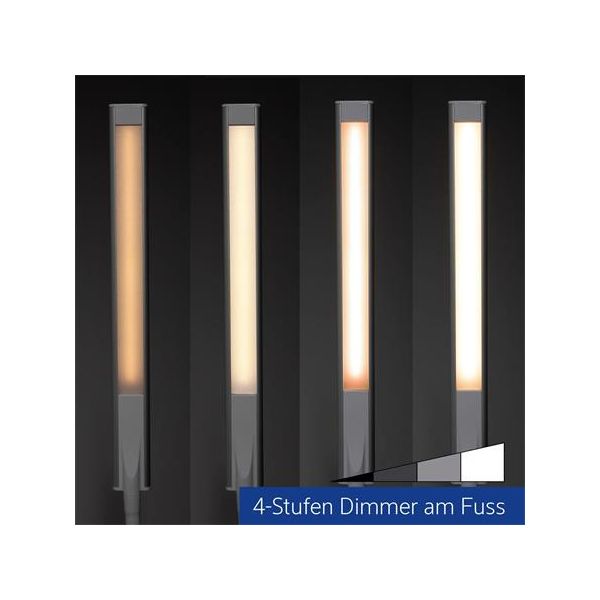 Energeticky úsporná stolová lampa vyrobená najnovšou technológiou LED. Ovládanie jasu, ktoré možno prispôsobiť aktivite a individuálnym potrebám. Čistý, decentný dizajn, harmonicky zapadá do priestoru. - svetelný zdroj: vstavaný LED panel, LED žiarovky sú vymeniteľné v tele svietidla - intenzita svetla: 726 lumenov, nastaviteľná v 4 úrovniach - osvetlenie: 1120 luxov vo vzdialenosti 35 cm - so stmievateľným dotykovým spínačom pre zníženie odtieňov - teplota farby: 3000 Kelvinov, teplá biela - priemerná životnosť LED: 50 000 hodín - priemerná spotreba energie: 6 kWh/1000 h - materiál ramena: kov, pogumovaný - materiál hlavy: hliník - dĺžka ramena: 38 cm - dĺžka hlavy: 32 cm - výška: 37,3 cm - hlava a rameno sa dajú naklápať a otáčať - vážený plastový podstavec, rozmer 16,7 cm x 12 cm - dotykový vypínač na podstavci - funguje zo siete 220/240 V - farba: biela - záruka: 2 roky - hodnotenie energetickej účinnosti: E ??(na stupnici A-G)