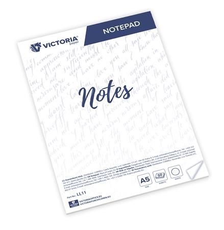 Poznámkový zošit, A5, 5x50 listov, čistý, VICTORIA OFFICE, biely, 250list