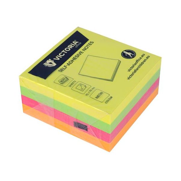 Samolepiaci bloček, 75x75 mm, 400 listov, VICTORIA OFFICE, neónový, 400list