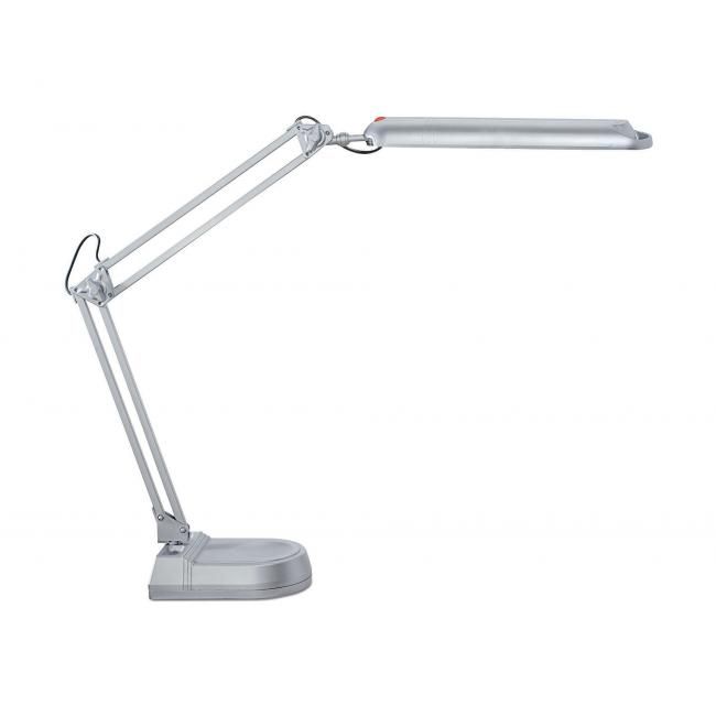 Lampa so základňou energeticky úspornej triedy „A“ s LED žiarovkami so životnosťou cez 20 000 hodín bez možnosti ich výmeny. Svietivosť 2 000 luxov pri vzdialenosti 35 cm od stola, svetelný tok 400 lumenov, extrémne nízka spotreba energie cca 9 kWh/ 1 000 h. Sklopná a otočná plastová svetelná hlava. Veľkosť hlavy cca 33 × 7 cm, stabilný podstavec 22 × 14,5 cm so závažím. Materiál kov a plast. Dĺžka spodného ramena 33 cm, horného 34 cm, výška normálnej pracovnej pozície 45 cm, dĺžka kábla 1,8 m. Farba strieborná.