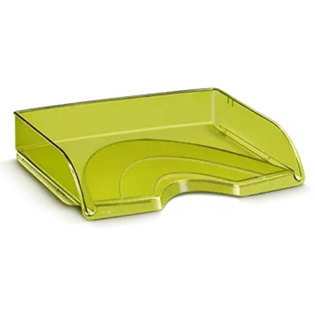 Elegantný odkladač s možnosťou vertikálneho stohovania alebo stohovania stupňovito dozadu. Široký otvor vpredu umožní ľahký prístup k dokumentom a ich triedenie. Je vhodný na dokumenty do veľkosti 24 × 32 cm. Celkové rozmery 341 × 265 × 65,4 mm, kapacita 420 listov (80 g / m²). Materiál 100% odolný vysokokvalitný plast. Väčšie balenie 10 ks. Farba transparentná zelená.
