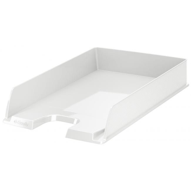 Moderný odkladač na uloženie dokumentov formátu A4 s unikátnym embosovaným povrchom po boku odkladača a v sviežich farbách radu Esselte VIVIDA. Možnosť kolmého alebo predsadeného stohovania, zaoblený výrez pre jednoduchší prístup k dokumentom. Materiál polystyrén. Rozmery 254 × 350 × 61 mm. Farba biela.