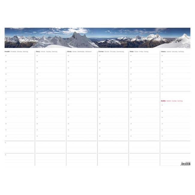 Plánovacia písacia podložka s ochrannou plastovou lištou proti poškodeniu listov. Každý list obsahuje predtlačené oddiely na sedem dní v týždni. Možnosť plánovania po hodinách a zapisovania telefonátov. Obsahuje 20 listov.