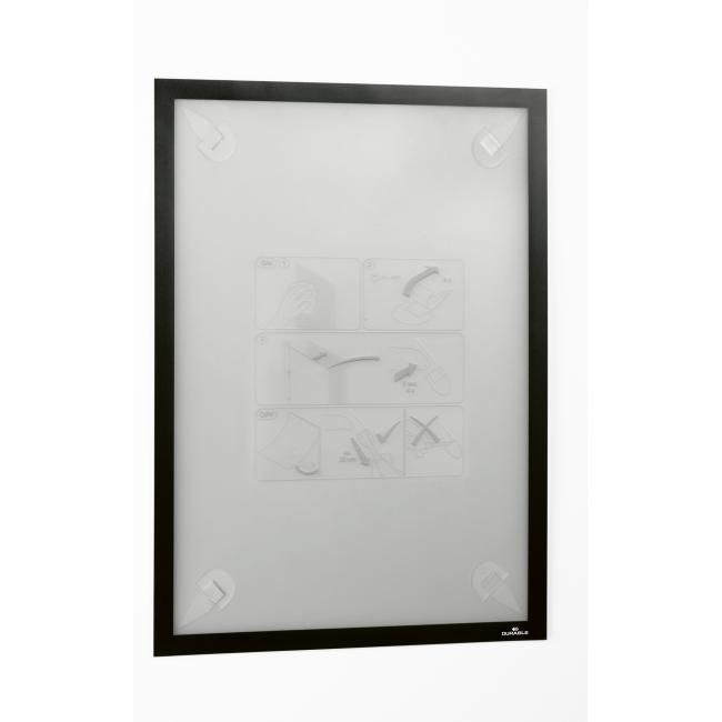 Samolepiaci informačný panel s prednou magnetickou časťou. Ideálny na vystavovanie plagátov, kľúčových informácií, špeciálnych oznamov alebo dôležitých čísel. Informácie sa ľahko vymieňajú a sú čitateľné z oboch strán, ak sa panel umiestni napr. na okno alebo priehľadné dvere. Vhodný na hladké a pevné povrchy. V prípade potreby je ľahko premiestniteľný bez potreby vŕtania. Formát A3, rámik čierny.