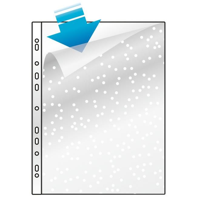 Priehľadný matný obal s eurodierovaním otvorený zhora a z bočnej strany. Formát A4. Hrúbka 50 mic. Balenie 100 ks.