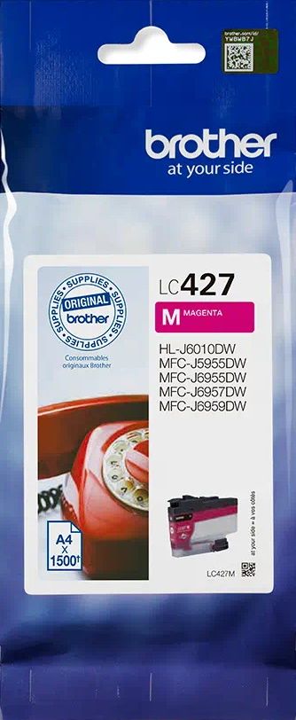 Originálna atramentová kazeta (cartridge) Brother LC427M vo farbe purpurová (magenta). Jeho kapacita je 1500 strán. Cartridge od výrobcu Brother spĺňa medzinárodné štandardy, vďaka čomu je garantovaná vysoká kvalita tlače.