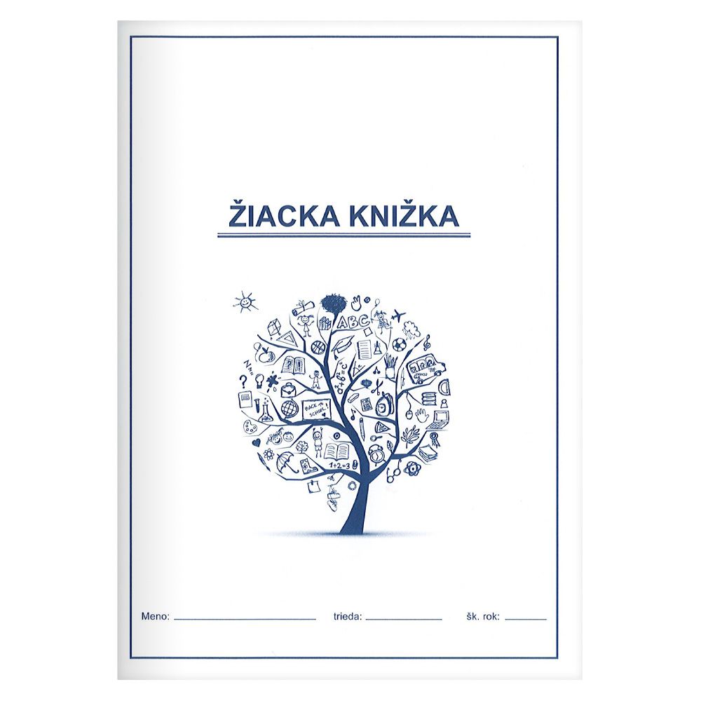 Žiačka knižka pre základné školy formátu A5. 8 listov so špeciálnou potlačou pre základné údaje o žiakovi, na evidenciu predmetov, známok, oznámenia, ospravedlnenia. Obálka s 2-farebnou potlačou a rozvrhom hodín, na zadnej strane vybrané slová.