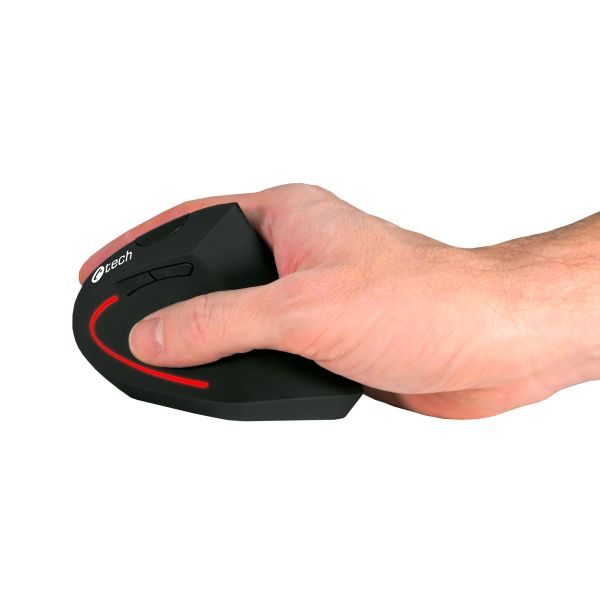 Myš C-TECH VEM-09/Vertikálna/Optická/Pre pravákov/1 600 DPI/Bezdrôtová USB/Čierna VEM-09