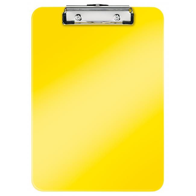 Pevná písacia podložka A4 na každodenné použitie v sviežich farbách WOW s dvojfarebným efektom. Silná kovová spona na uchytenie až 80 listov, háčik na zavesenie. Materiál polystyrol. Väčšie balenie 10 ks. Farba žltá.