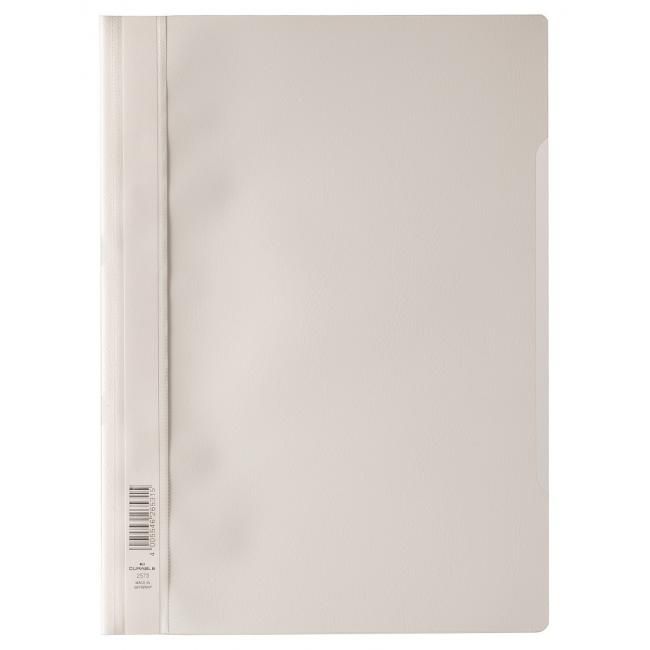 Štandardný rýchloviazač z bieleho PVC s priehľadnou prednou stranou a vymeniteľným pásikom, formát A4; dodávané v taške po 10.