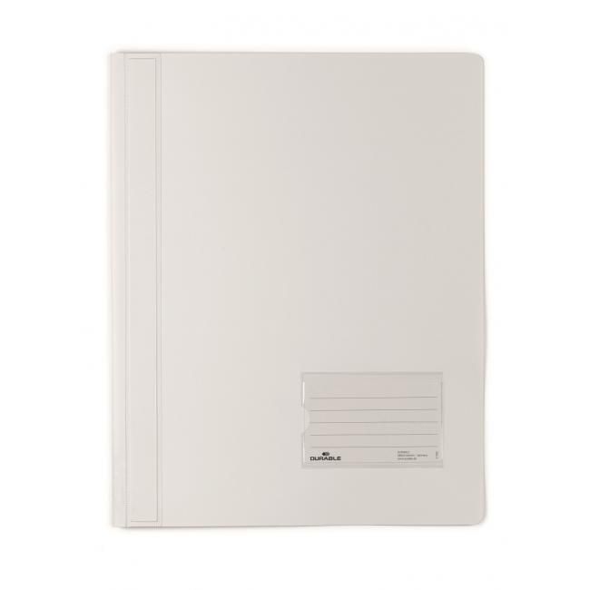 Štandardný rýchloviazač z bieleho PVC s priehľadnou prednou stranou a vymeniteľným pásikom, formát A4; dodávané v taške po 10.